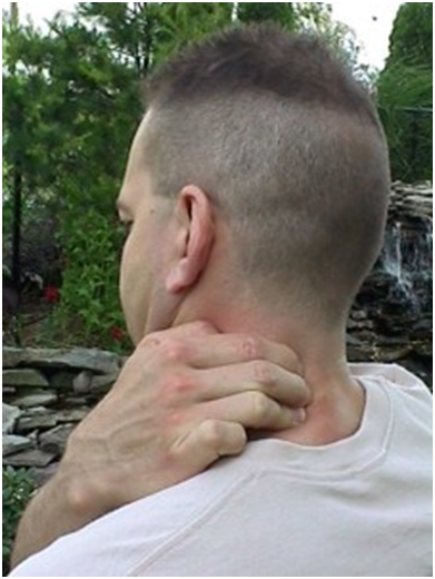Here is a two-step Julstro self-treatment method that works. First lean your head back and grasp the muscle at the back of your neck.